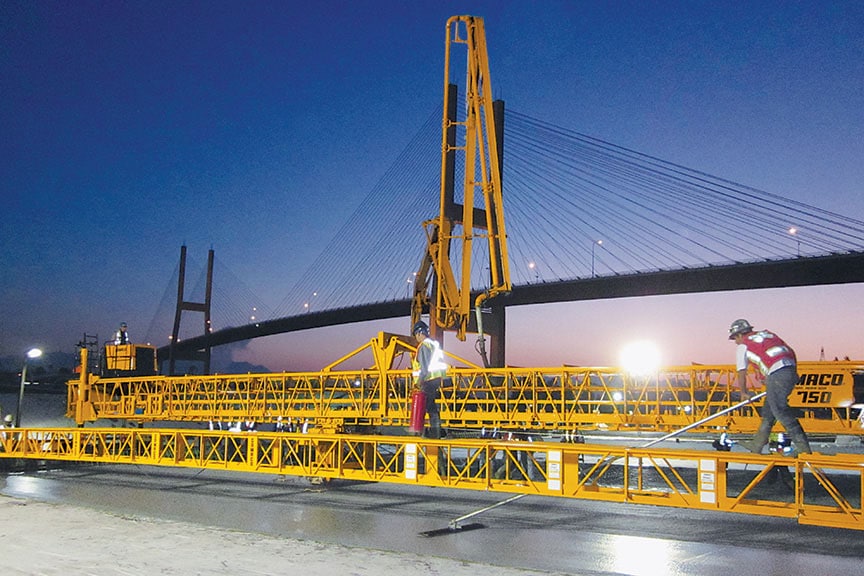Финишер нового поколения с максимальной шириной загрузки за один проход 47,55 м. Применяется в работе по отделки мостов, плоских и наклонных поверхностей. Снабжен электронно-гидравлическими приводами для более простой настройки и управления. Автоматическое продвижение вперед в конце прохода и изменение угла атаки каретки.